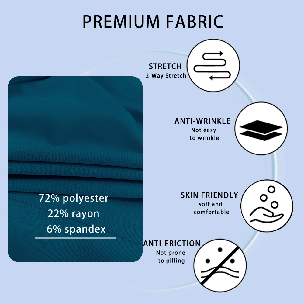 Crafted from a premium fabric blend of polyester, rayon, and spandex, this uniform offers excellent breathability, stretch, and durability. The soft, lightweight material allows free movement and keeps you comfortable throughout the day, while remaining easy to wash and maintain.